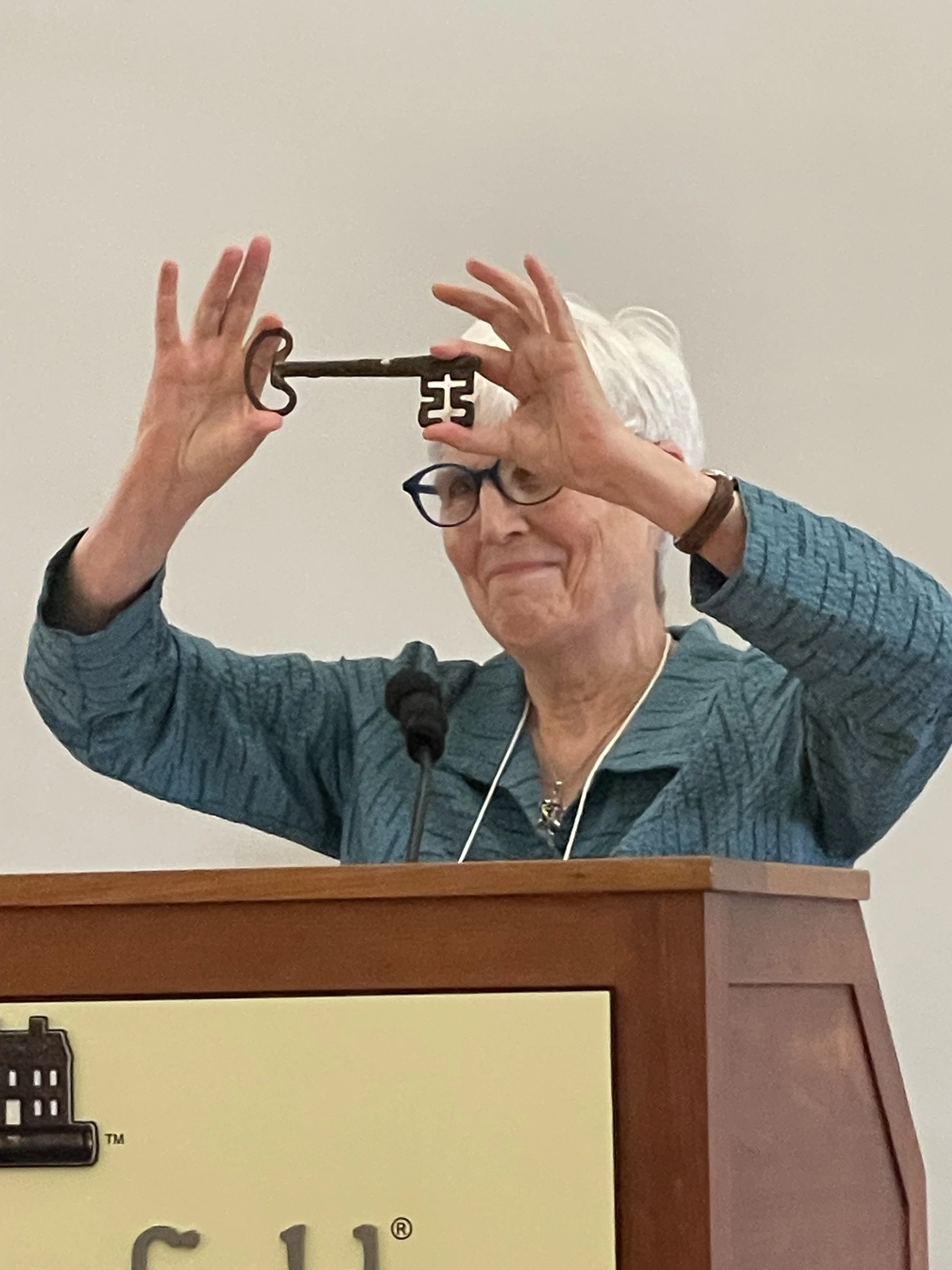 Sarah Dixwell (Dixie) Brown holding up the key to Dover Castle. Photo: Babs Deacon