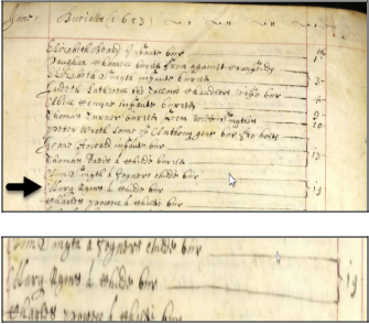 So, I tasked a British researcher with another search of St. Clement-Danes’ burials between 1651 and 1655. Sure enough, she found the following: